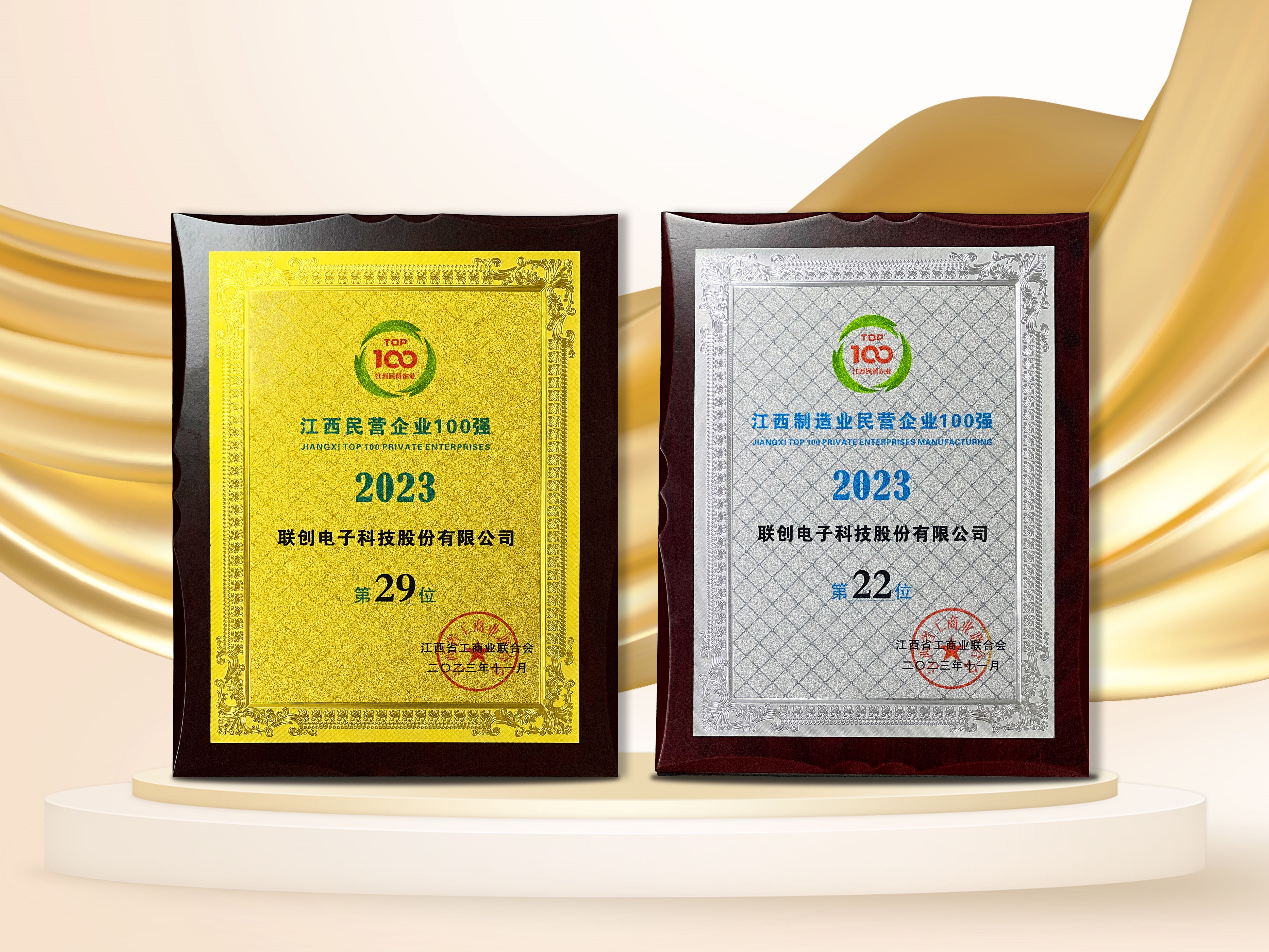 11月3日,2023江西民营企业100强和社会责任发布会在南昌召开,会上发布了2023江西民营企业100强、制造业民营企业100强、服务业民营企业20强榜单。联创电子科技股份有限公司连续多年入围榜单,位列2023江西民营企业100强第29位、制造业民营企业100强第22位。